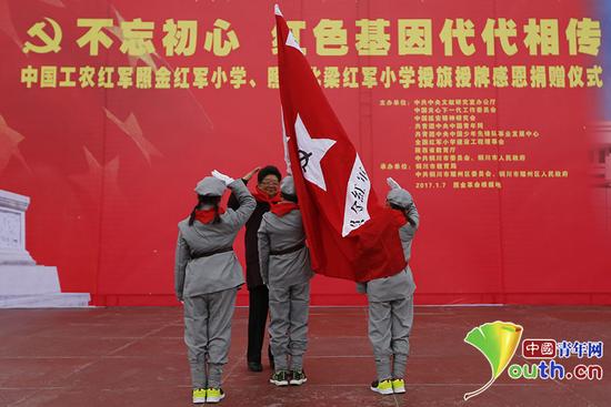 在1月7日舉行的中國(guó)工農(nóng)紅軍照金紅軍小學(xué)、照金北梁紅軍小學(xué)授旗授牌儀式現(xiàn)場(chǎng),第十屆全國(guó)人大常委會(huì)副委員長(zhǎng)、全國(guó)紅軍小學(xué)建設(shè)工程理事會(huì)榮譽(yù)理事長(zhǎng)顧秀蓮親手為兩所紅軍小學(xué)的少先隊(duì)員授旗!≈袊(guó)青年網(wǎng)記者 李拓 攝 中國(guó)青年網(wǎng)照金1月8日電(記者 李拓)“建設(shè)紅軍小學(xué)是發(fā)揚(yáng)紅軍精神、造福老區(qū)人民的大好事、大實(shí)事,也是培養(yǎng)理想堅(jiān)定新一代的具體舉措。”1月7日,在全國(guó)紅軍小學(xué)建設(shè)工程理事會(huì)為陜西照金陜甘邊革命根據(jù)地兩所小學(xué)舉行的授旗授牌儀式上,銅川市耀州區(qū)區(qū)委書記楊宏偉這樣說。由此,在全國(guó)各地革命老區(qū)和中央蘇區(qū)建設(shè)的紅軍小學(xué)數(shù)量已達(dá)232所。 上世紀(jì)三十年代,劉志丹、謝子長(zhǎng)、習(xí)仲勛等老一輩無產(chǎn)階級(jí)革命家創(chuàng)建了西北地區(qū)第一個(gè)山區(qū)革命根據(jù)地--陜甘邊照金革命根據(jù)地。而此次成為紅軍小學(xué)的照金鎮(zhèn)北梁小學(xué)原址正是位于北梁村的陳家坡會(huì)議舊址。2000年,這所創(chuàng)建于1955年的學(xué)校由老一輩革命家、習(xí)仲勛夫人齊心攜全家捐資15萬元遷址重建。 在儀式現(xiàn)場(chǎng),第十屆全國(guó)人大常委會(huì)副委員長(zhǎng)、全國(guó)紅軍小學(xué)建設(shè)工程理事會(huì)榮譽(yù)理事長(zhǎng)顧秀蓮親手為兩所紅軍小學(xué)的少先隊(duì)員授旗。隨后,全國(guó)紅軍小學(xué)建設(shè)工程理事會(huì)副理事長(zhǎng)兼秘書長(zhǎng)方強(qiáng)宣讀了關(guān)于批準(zhǔn)建立“中國(guó)工農(nóng)紅軍照金紅軍小學(xué)、照金北梁紅軍小學(xué)”的決定。 接著,中國(guó)延安精神研究會(huì)常務(wù)副會(huì)長(zhǎng)兼秘書長(zhǎng)、全國(guó)紅軍小學(xué)建設(shè)工程理事會(huì)副理事長(zhǎng)蘇希勝少將和全國(guó)紅軍小學(xué)建設(shè)工程理事會(huì)副理事長(zhǎng)劉延寧分別為兩所紅軍小學(xué)授牌。 蘇希勝在講話中指出,紅軍小學(xué)最大的特色是一個(gè)“紅”字。紅字的根本要求是每位老師都要用自己的紅心培育出每個(gè)學(xué)生的紅心,“紅心的最高要求就是永遠(yuǎn)跟黨走,在學(xué)校成為德才兼?zhèn)涞暮脤W(xué)生,長(zhǎng)大后成為建設(shè)社會(huì)主義需要的有用人才”。 在隨后的捐贈(zèng)活動(dòng)中,廣大共產(chǎn)黨員、老紅軍后代、革命烈士親屬和社會(huì)愛心單位為老區(qū)的孩子們送去了價(jià)值百萬元的款物和體育器材。陜甘邊革命根據(jù)地老一輩無產(chǎn)階級(jí)革命家親屬向照金兩所紅軍小學(xué)贈(zèng)送了數(shù)字電影放映設(shè)備和60部紅色兒童影片。 此外,全國(guó)紅軍小學(xué)建設(shè)工程理事會(huì)副理事長(zhǎng)劉延寧、賀雷生、常務(wù)理事郝清杰向兩所紅軍小學(xué)贈(zèng)送了兩千冊(cè)圖書和小紅軍服裝。中共中央直屬機(jī)關(guān)團(tuán)工委書記、中直機(jī)關(guān)青年主席、全國(guó)紅軍小學(xué)建設(shè)工程理事會(huì)常務(wù)理事吳佳松,全國(guó)青聯(lián)常委徐勝杰為兩所小學(xué)全體學(xué)生贈(zèng)送了運(yùn)動(dòng)鞋和足球。中華全國(guó)體育基金會(huì)理事長(zhǎng)吳奇代表基金會(huì)捐資40萬元為兩所紅軍小學(xué)添購(gòu)體育器材,并表示將為全國(guó)所有紅軍小學(xué)援建體育活動(dòng)健身中心。 儀式最后,顧秀蓮為北京芳草地國(guó)際學(xué)校與照金北梁紅軍小學(xué)結(jié)成手拉手學(xué)校進(jìn)行了授牌。周恩來紅軍小學(xué)總校長(zhǎng)王其明為照金兩所紅軍小學(xué)贈(zèng)送了價(jià)值數(shù)十萬元的電子教學(xué)器材。 > 據(jù)了解,“紅軍小學(xué)”建設(shè)始于2007年,由前中央領(lǐng)導(dǎo)和老一輩革命家、紅軍后代倡導(dǎo)發(fā)起,至今已經(jīng)走過整整十年。在黨中央親切關(guān)懷下,紅軍小學(xué)幫助老區(qū)的孩子們堅(jiān)定了理想信仰并切實(shí)改變了他們的學(xué)習(xí)環(huán)境,同時(shí)也使“紅軍小學(xué)”成為了著名的紅色教育助學(xué)品牌。 歡迎撥打中國(guó)青年網(wǎng)新聞熱線010-57380651或發(fā)送新聞線索至郵箱youthpress@126.com;關(guān)注“中國(guó)青年網(wǎng)”(ID:youthzqw)微信公眾號(hào),可直接對(duì)話記者,曝料線索。 (原標(biāo)題:全國(guó)紅軍小學(xué)再添陜甘邊老區(qū)新“火種” 至今已達(dá)232所) |